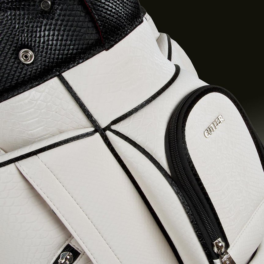 The Rachel Golf Bag is a classic black and white cart golf bag, features 14 dividers, outside putter and 7 pockets. Matching black color head covers sold separately.